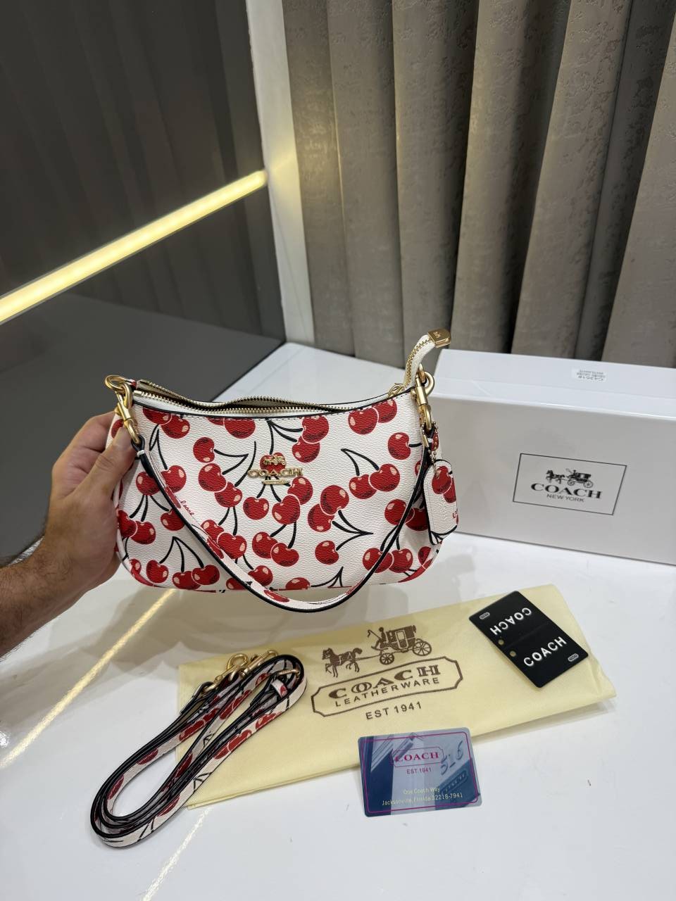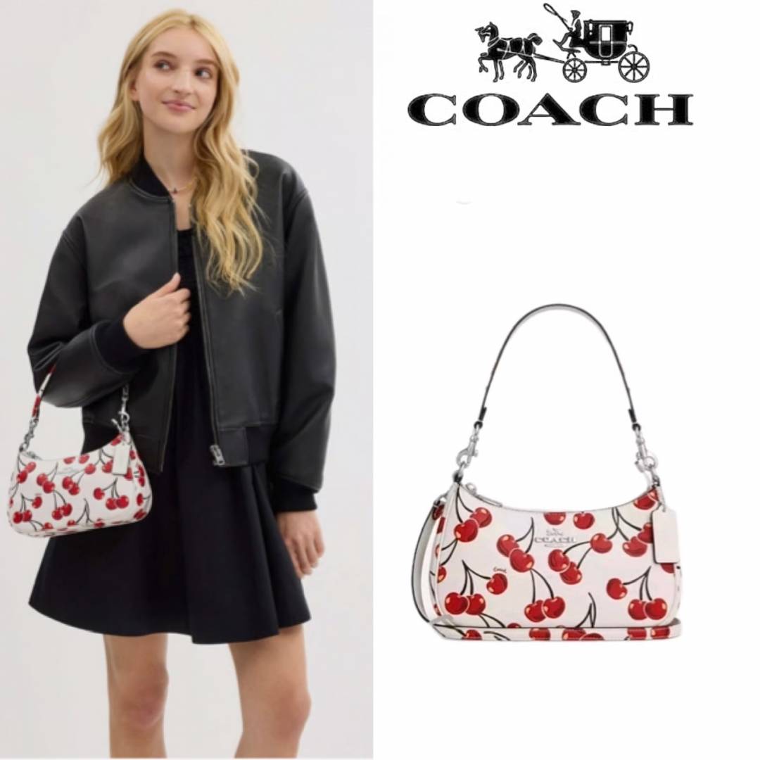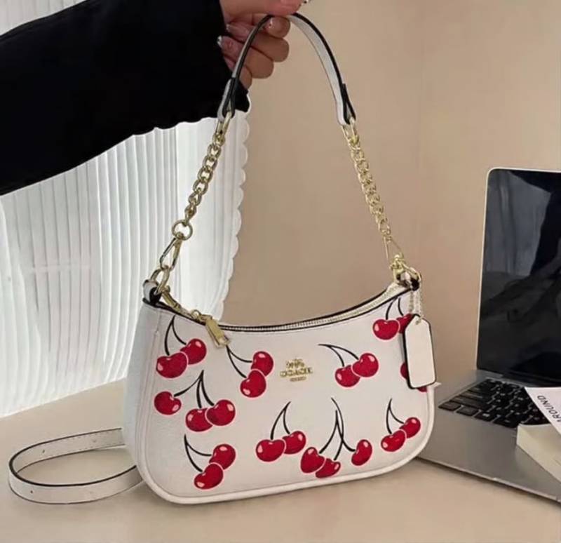 COAC.H CHERRY PRINT TERI SHOULDER BAG PREMIUM WITH OG BOX