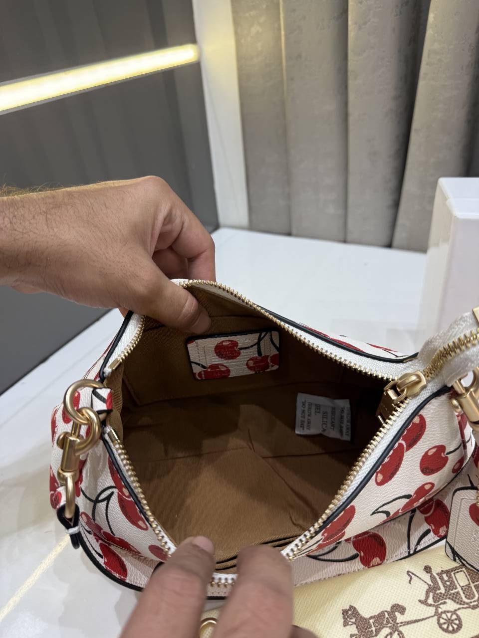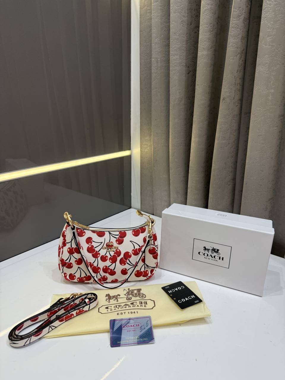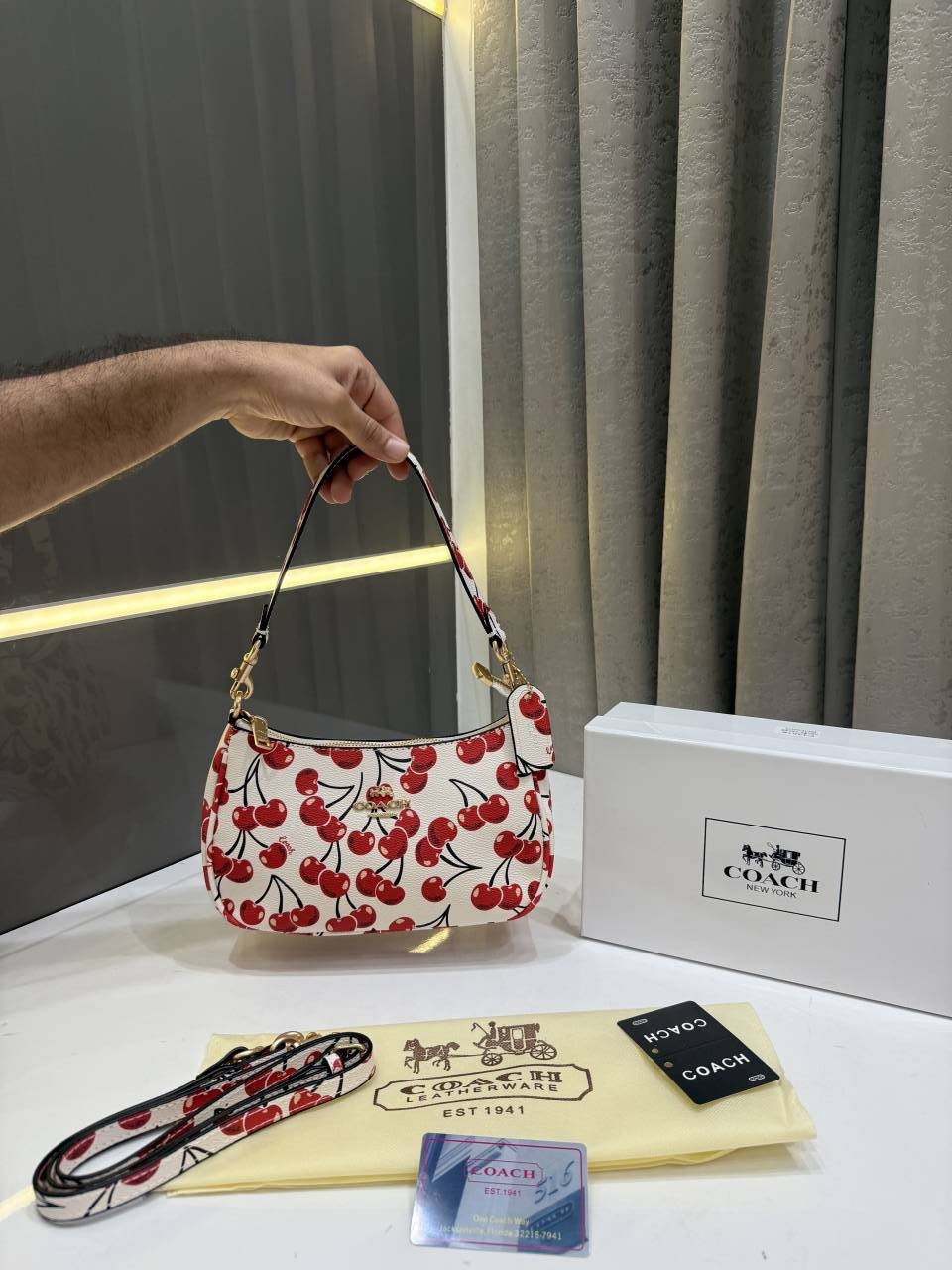COAC.H CHERRY PRINT TERI SHOULDER BAG PREMIUM WITH OG BOX